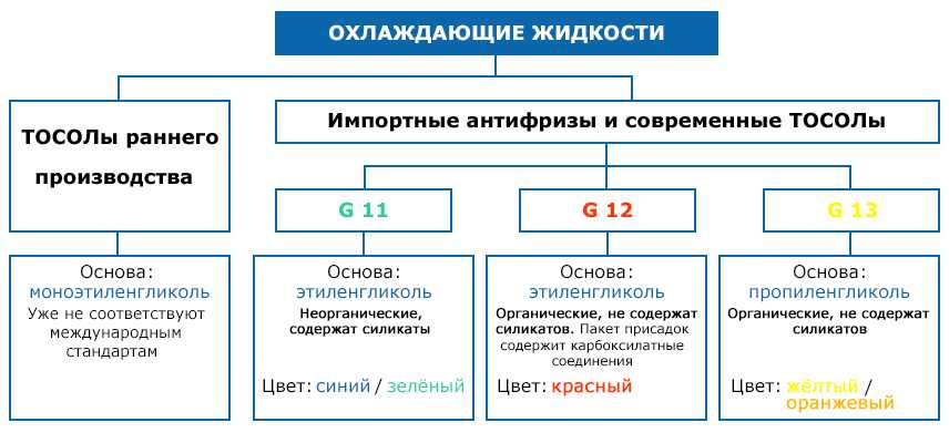 Назначая сроки замены антифризов, их производители руководствуются, прежде всего, типом хладагента.
