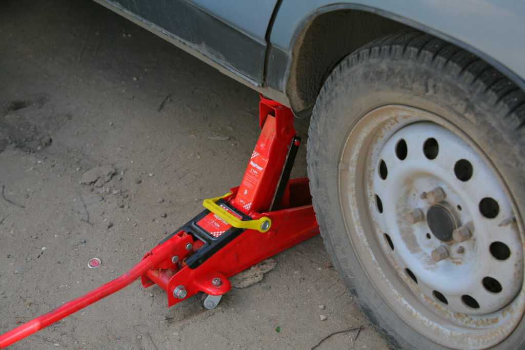 5) Поднимите автомобиль на высоту, которой будет достаточно не только снять колесо, но и поставить другое