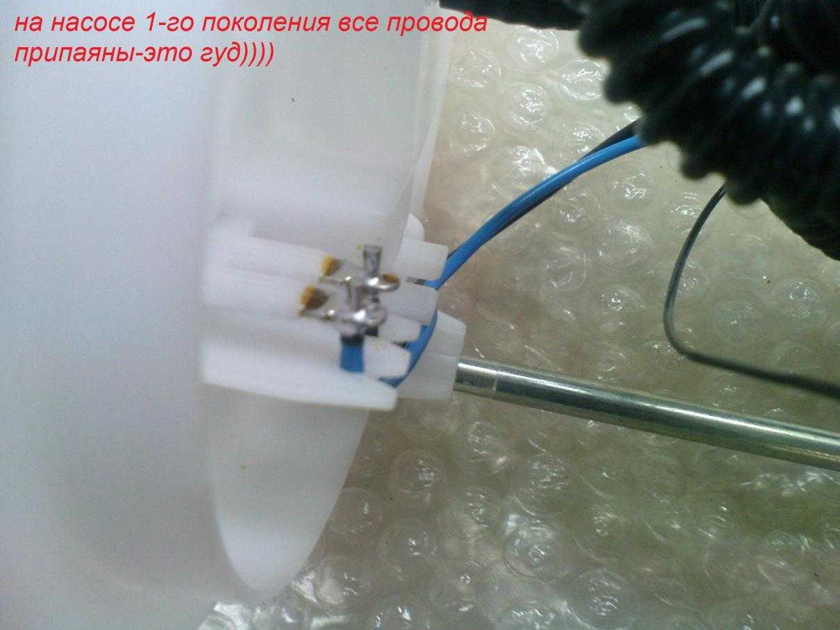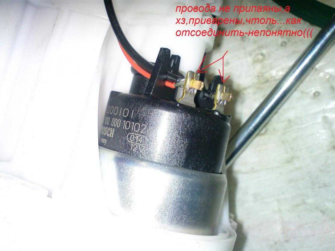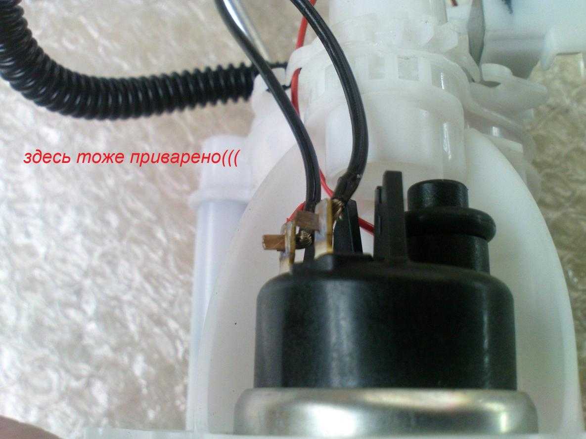 - Проверить подачу тока. Для этого нужно достать сам бензонасос, не отключая его от электросети. Включить зажигание и замерить напряжение на клеммах, в норме должно быть 12-12,5 В. Если при этом мотор не работает, его придется заменить;