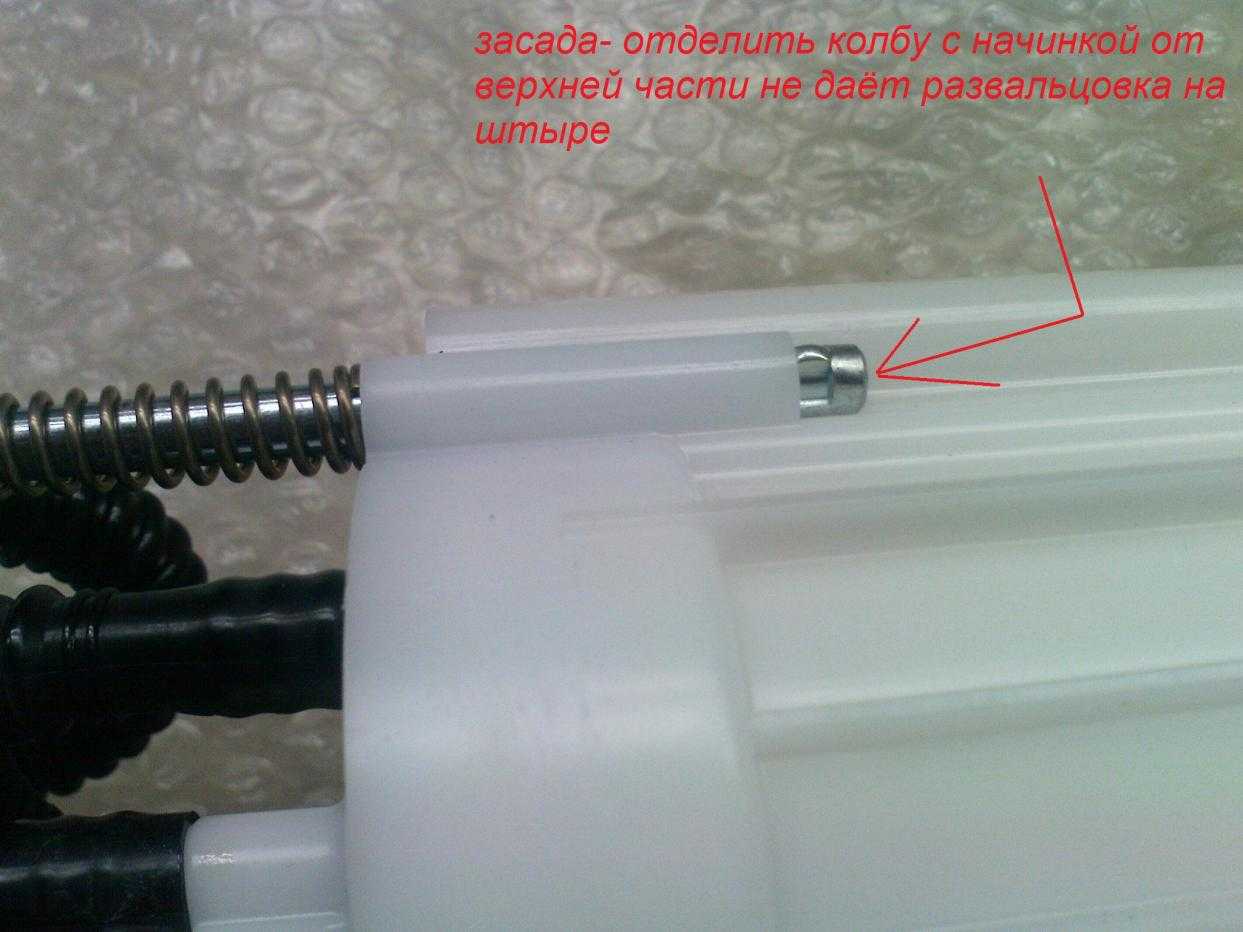 Самое трудное при разборке насоса III- варианта — вытащить «начинку» из колбы (3 штырька в колбе,на них насажена «начинка») я, признаюсь, сломал при этом все 3 штырька. А это значит-колба в утиль(хотя она уже до меня была сломана кем-то так-что не обидно), а второе-«приваренные» провода к контактам (можно тупо откусить и припаять обычно, оловом)