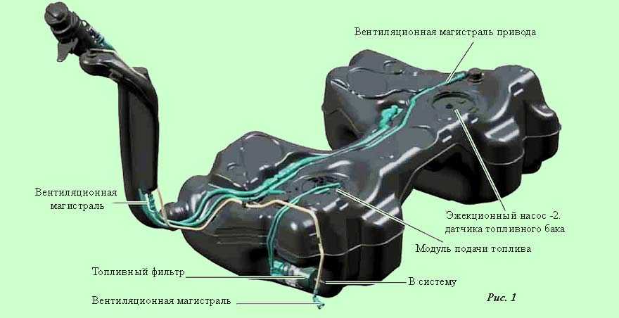 Для повышения жесткости стенки бака имеют выштамповки, а внутри – перегородки, которые также играют роль волнорезов при перемещениях топлива во время движения автомобиля.