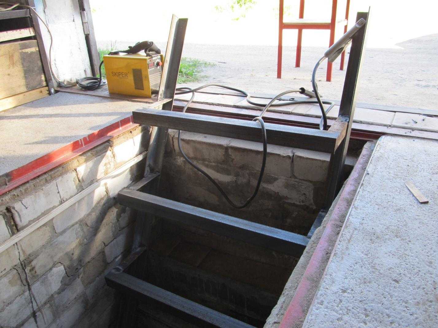 - качественно укрепленный край углубления. Поскольку пол гаража обычно забетонирован, лучше использовать для укрепления металлический уголок. Его можно установить на стадии бетонирования;