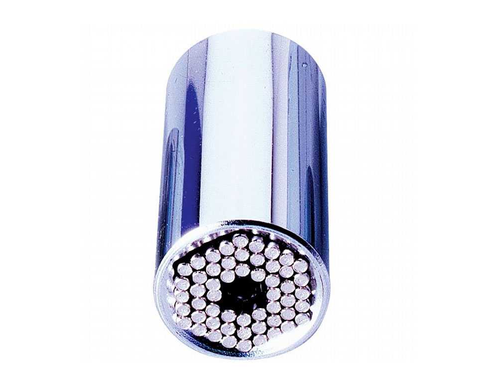 Многофункциональность торцевика достигается за счет его головки. Она состоит из 54 элементов, сделанных из сверхпрочной стали и закрепленных на пружинах. Именно благодаря пружинам головка способна подстроиться под размер и форму гайки, надежно зажимает ее и вращает в нужную сторону.