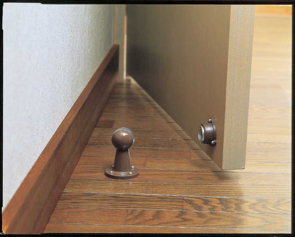 Приспособления из пробки, резины или силикона обычно оборудуют на пол. Недостаток мягкого упора заключается в его неприметности. Об такое изделие можно запросто удариться пальцем, особенно в темноте. Кроме того, пробочный ограничитель может смотреться гармонично лишь в соответствующей дизайнерской стилистике.