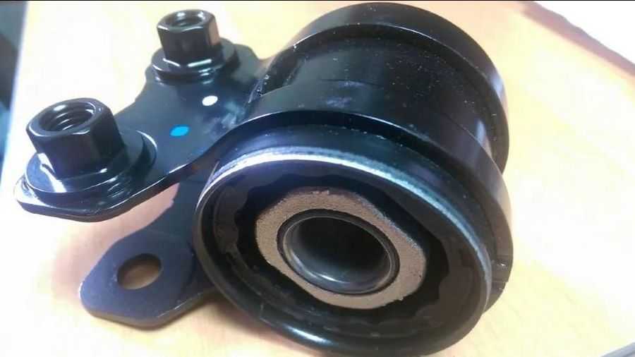 Внешне это можно определить по смещению центральной втулки сайлентблока или обрыву резиновой накладки. Если автомобиль использовался бережно, деталь может выйти из строя из-за естественного износа. Так, спустя 5-7 лет резина начинает «дубеть». Сайлентблок перестает быть таким упругим и начинает люфтовать.