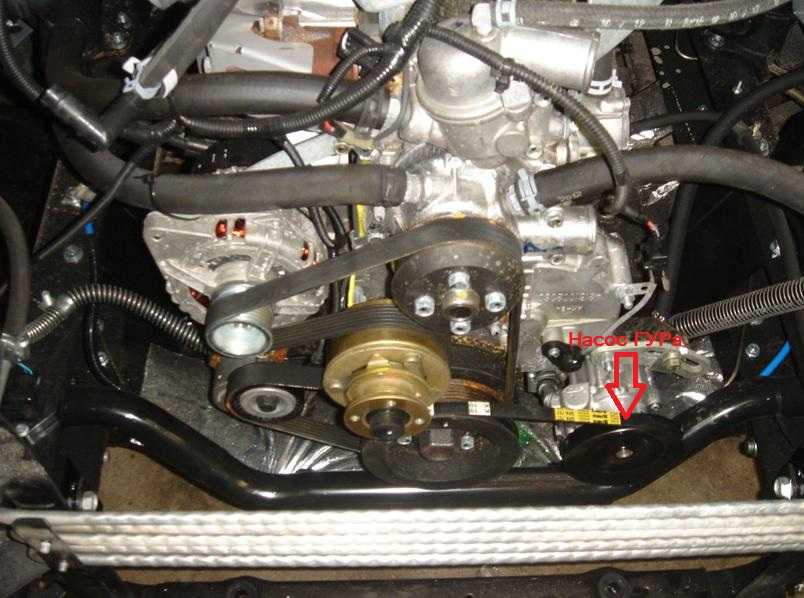 Та же операция с приводным ремнём ГУР и по совместительству вентилятора (у них разные шкивы) осуществляется посредством изменения положения насоса ГУР.