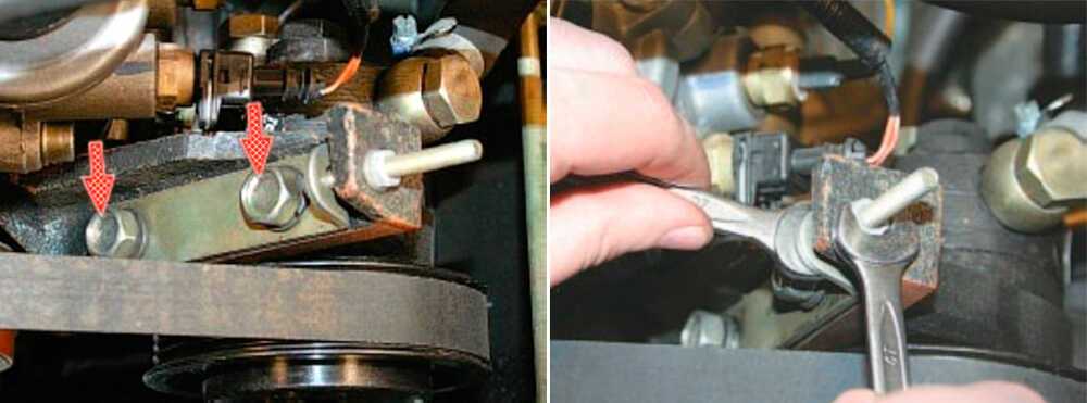 Для этого нужно ослабить болт, которым насос гидроусилителя крепится к кронштейну, а затем подтянуть регулировочный болт, сдвигающий насос ГУР в сторону кронштейна и осуществляющий его натяжку.