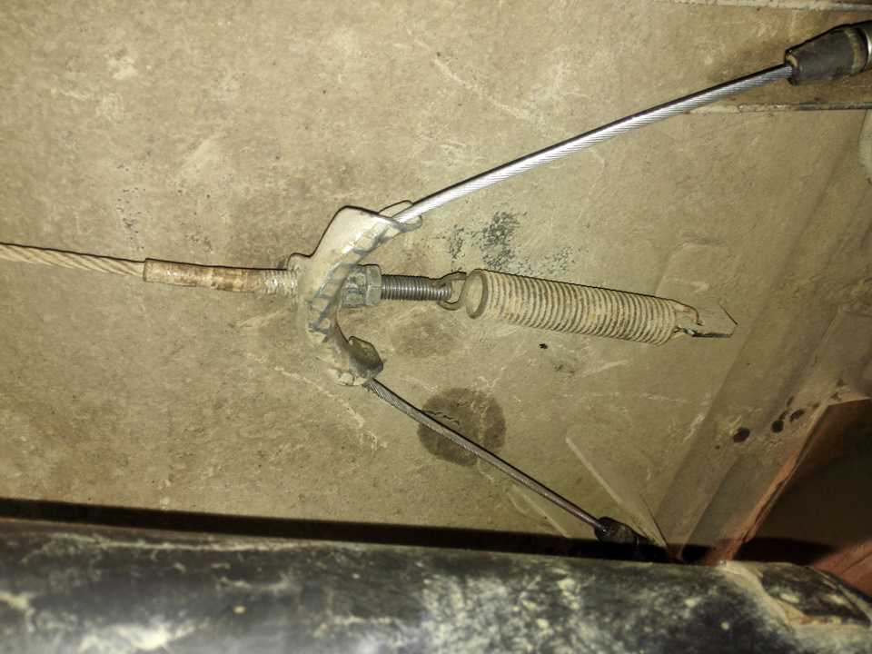 После этого опускаемся в смотровую яму, и приступаем к регулированию натяжения троса.